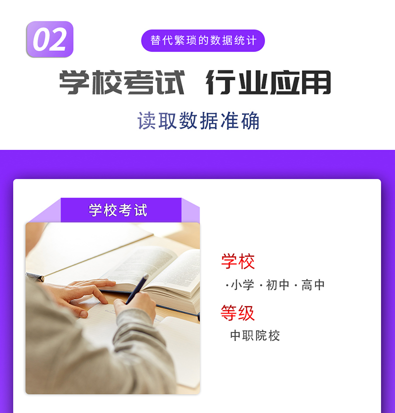 主要應(yīng)用于學(xué)校,培訓(xùn)機(jī)構(gòu),職業(yè)鑒定站,考試評卷、考試報(bào)名、多行業(yè)的測評、考核、選舉